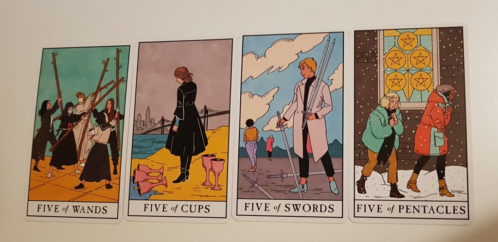 If you are going through a hard time like these four cards depict, I wish you all the best. Next time we will begin to come out the other side with the cards numbered six.